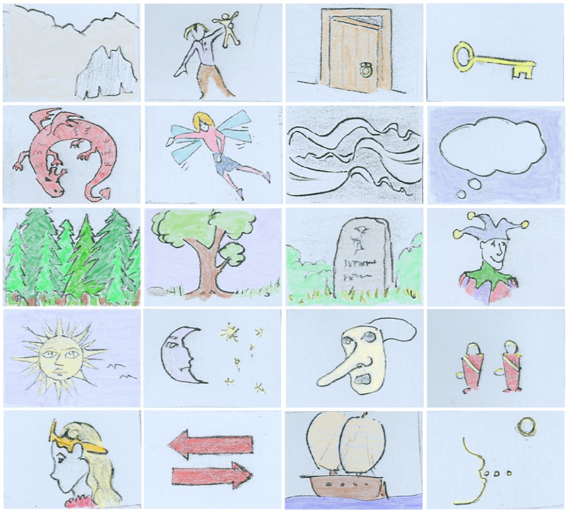 ii. L2 identity — Some philosophers, Owen Flanagan (1992) for instance, go as far as to see the emergence of self-consciousness in narrative capacity. Narrative “plays the role of giving organization, meaning, and structure to a life” (Flanagan, 1992, p.189). For Jung (1917), this process of “coming to selfhood” happens through the archetypes (p.173); key to the journey of individuation are the self, persona, ego, shadow, anima/animus, the wise old man, and the great mother (Stein, 2005). Storytelling would help language learners create their L2 identity too.  “Codes, signs and myths exist everywhere in every culture, and until we can successfully read and understand them, we cannot truly understand ourselves. Unlike other narratives, fairy tales…force readers to delve into the mythic level of interpretation” (Goh, 1986, p.22). Pushkov (2011), who uses OH cards in his counseling practice, says the games facilitate changes in character for his clients. “Associations that arise…while looking at the pictures serve as a mechanism of identification”, so from the story and discussion, effects permeate into “the level of real life” (Popova & Miloradova, 2014, p.211).
