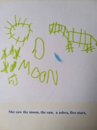 Alex went to the zoo. She saw moon sun the zebra five stars.