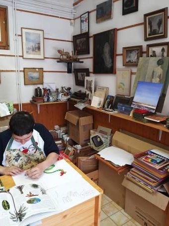But here is where she likes to work now: in the family studio. My pictures are around her, her grandfather’s, great grandfather’s and great great grandfather’s pictures too.