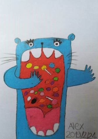 The first signs of her being a story writer were the texts and pictures she wrote and drew on the walls of the rooms she was in. Drawing and writing on walls goes back to Lascaux and paleolithic times and reached its climax in the Sistine Chapel with MichelAngelo…Alex was working in an ancient tradition.
