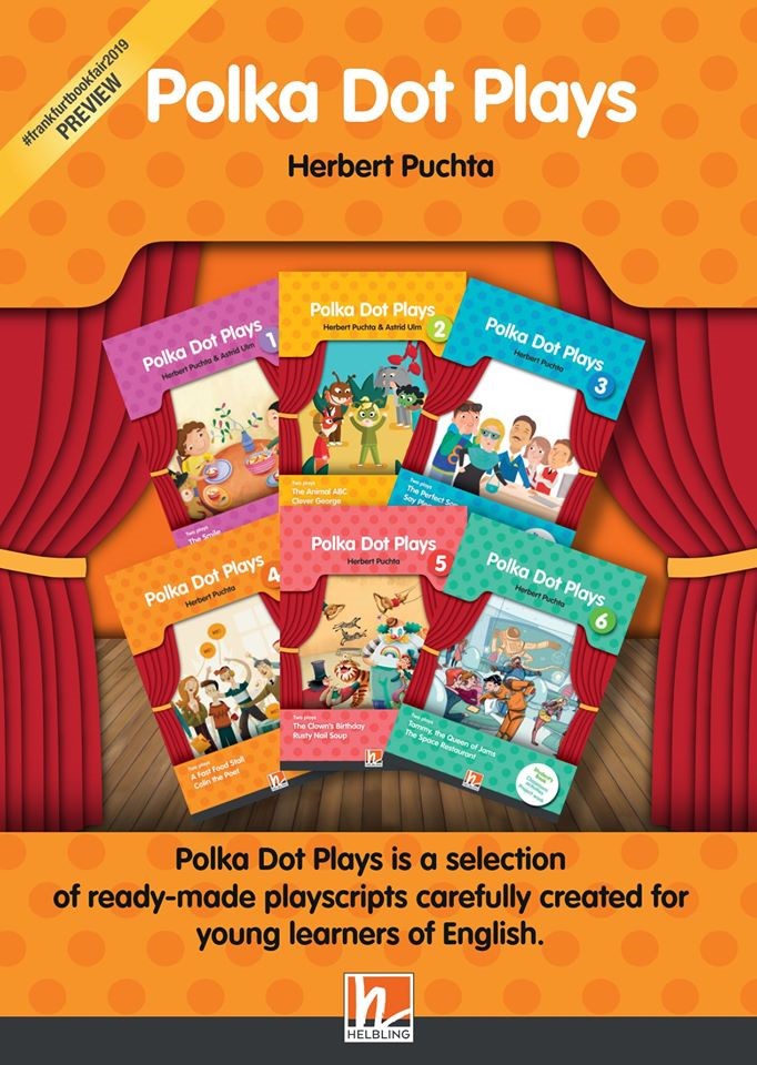 Polka Dot Plays 1-6. H. Puchta and A. Ulm. (2019) Helbling Languages. The Smile. The Maths Test. ISBN-978-3-99089-122-3, pp 72. The Animal ABC. The Maths Test. ISBN-978-3-99089-123-0, pp 72. The Perfect Son. Say Please. ISBN-978-3-99089-124-7, pp 72. The Fast Food Stall. Colin the Poet. ISBN-978-3-99089-152-4, pp 72. The Clown’s Birthday. Rusty Nail Soup. ISBN-978-3-99089-126-1, pp 72. Tammy, the Queen of Jams. The Space Restaurant. ISBN-978-3-99089-127-8, pp 72. The collection consists of 12 plays – ready made  graded playscripts which young learners can read but above all can perform for each other in class or for an audience consisting of other students in the school, peers or parents and other adults. These publications are a fantastic way to introduce drama into a young learner’s language class. The students books at lower level first introduce the characters, some key vocabulary, then the text of the play itself, followed by language practice: comprehension questions, elements of CLIL (e.g. numbers, information about caterpillars and butterflies), focus on some useful language and fixed expressions used in speaking, sequencing events, expressing opinions, themed work, games and puzzles, project work, and a memory test. At higher levels needless to say the language in the plays is more complex, the follow up language work has some grammar focus, and there may be some reading or singing involved too. The books are accompanied by teacher’s notes with tips how to make the most of the publications and there are audio recording available too which will be of great help in pronunciation and voice projection work. This is a great publication which is reminiscent of Drama with Children by Sarah Philips OUP (1999), but it is much more ready to use instantly than the older publication which requires more preparation and structuring on the part of the teacher.