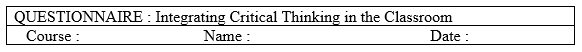 After the course and the integration of critical thinking activities in the English curriculum answer the following questions concerning your behavior: