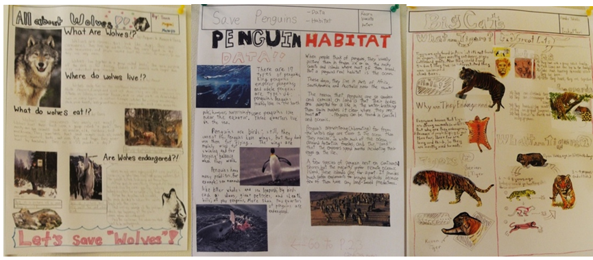 In addition, there is the interaction among classes. For example, if learning output seems inspiring and is worth sharing with everyone else in the school, they are displayed in the museum. One of the photos showcases students’ exemplary works. Students do not always go to the Internet and borrow resources. They are taught to read physical books and practise synthesising information. They then build a report from their understanding of knowledge and interpretation.