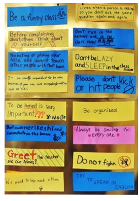 Learning is constantly enriched through authentic language use as students choose to talk about real people and issues which catch their attention. In this experience, the practice of linguistic form and social knowledge merge into one, through which students also participate in building the school culture. Besides, everyone takes an active role by contributing ideas to keeping the learning environment positive and helpful, which serves to merge language study with sociocultural understanding.