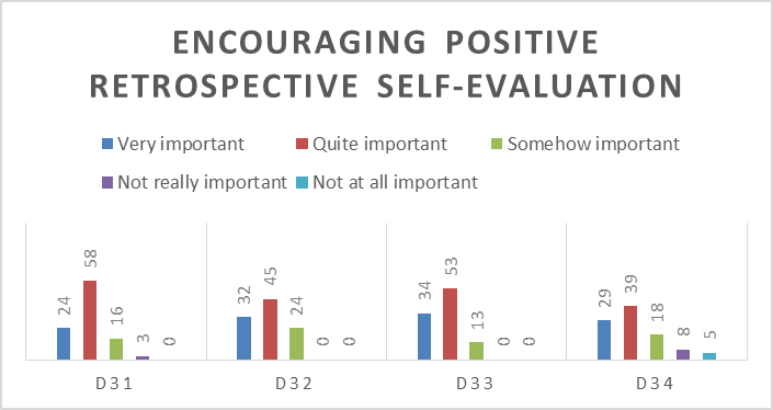The figure shows that 13 students stated that this strategy was very important, 13 said it was quite important, 11 stated it was somehow important, and 1 reported was not really important. This means that they generally believed it was important. Unfortunately, it was not implemented in the classroom, because the course introduction was poor at the start of the semester. Furthermore, there was no discussion on the goals of the class, and how to achieve them. In determining goals' achievement, the lecturer can refer to the following steps: 1) drawing up detailed written agreement on what they will study and the learning procedure to adopt, and 2) constantly monitoring class's progress to sure that they have respected the details of the contract.