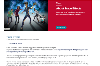 Online Video Games – Trace Effects this was one of the most effective online tools specifically because it offered opportunities for engagement, discussion, teaching grammar points and enhancing language skills. Trace Effects specifically also includes culture, as well as topics related to women empowerment, the arts and the environment among several. The key to engagement here is the way lessons are tailored. In our case we created speaking, writing, listening, and reading lessons around each chapter of the game using the game itself, but also the additional resources provided such as the comics. Sample activities can be provided upon request.