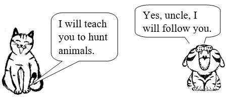 One-day, the cat called his nephew near him. He said, "Now time has come for you to learn how to hunt animals." The tiger listened and nodded his head obediently.