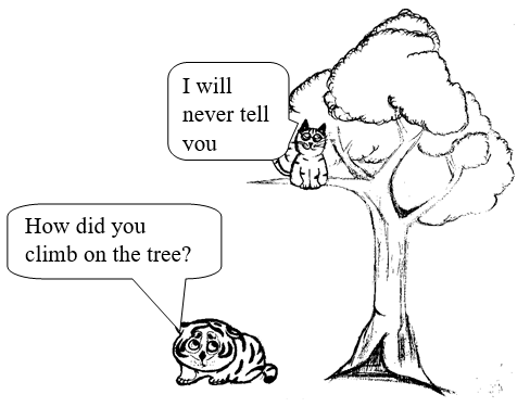 The tiger was surprised how fast his uncle climbed on the tree. The cat said to his nephew, "I taught you two skills but I didn't teach you the third skill: how to do climbing."