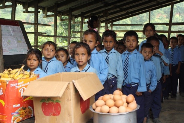 As the students don’t have to move from one classroom to another, breaks between lessons are short, and it is quite a long morning until 1:30pm when there is half an hour’s lunch break. The children love to run about during that time, make good use of the stone slab designated for table tennis or eat dry noodles from little packages that are probably meant to be stirred into hot water but which they nibble raw as they are. Nobody has what we would consider a “packed lunch” and the school only provides something to eat three times a week: then the pupils line up under the roofed yard to be given a banana, an apple and a hard-boiled egg each, courtesy of the German charity that also sponsors 25 children’s school fees and pays two of the teachers’ entire monthly salaries. And still they earn so little that there is a big tendency to look for work in Kathmandu or abroad – where in most cases they would not be able to work as teachers, given that most of them go into the profession without a university qualification, the headmaster being the only exception with a BA in Maths. Once they are in their first job here, they do distance studies to get some certificate and only go to a bigger place and the college or university there to take an exam. Their families simply cannot finance a course of studies away from home. As a result, most of these very young teachers have not had any training in methodology or classroom management, a lesson plan is an unknown concept, teaching is very often along the lines of “please open your books on page … and read”. And yet – the pupils are so eager to learn, do their best to concentrate in truly adverse circumstances and could certainly do well, given the chance. They leave Janata English School after their form seven, at the age of 13 or 14. Whichever school they attend after that, state or private, will charge fees – and they will have to be boarders, so inconceivable without help from abroad.