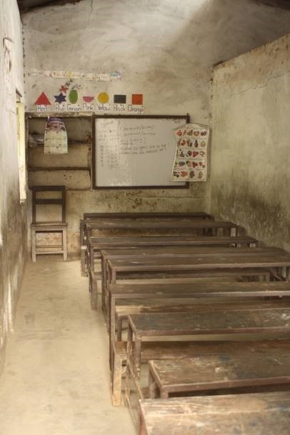 Meanwhile the teachers retrieve books and pens from the teachers’ room on the first floor of the stone building. Each teacher has a locker in a cabinet for his lesson material, there are two wooden tables in the middle of the room with plastic chairs to sit around it and a separate desk and chair in the back of the room for the headmaster. Space is at a premium.