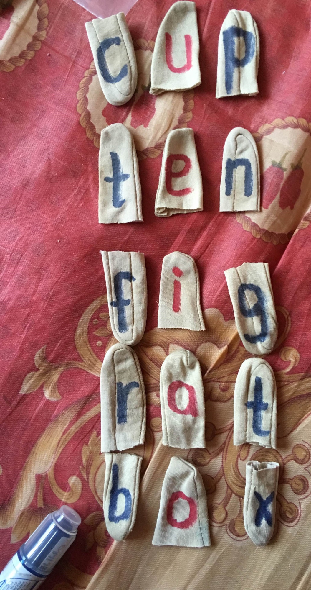 We had access to old gloves and the cut off fingers (see Figure 9). What was useful about this resource is that the learners could ‘wear’ the glove fingers, allowing the use of the learners’ fingers to help with the concept of breaking a word up into parts or putting the sounds together to make a word.