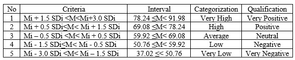 The questionnaire data were processed using Microsoft Office Excel to find out the mean score of each dimension. An ideal mean score analysis was conducted to find out the students’ perception on the use of Instagram in this study. The obtained mean score was calculated using the ideal mean score formula proposed by Koyan (2012) to find out the qualification level of each dimension. The result of the calculation reveals the qualification level which indicates the perception category of students’ responses ranging from very high, high, average, low and very low was revealed. These categories mean that the respondents’ perception may range from very positive to very negative perception respectively.