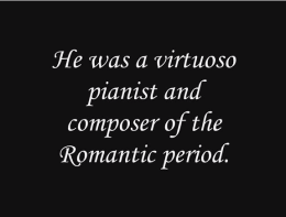 His talent was recognised when he was 6 and his first performance happened three years later. A word famous pianist virtuoso ripped from his childhood by the ripe age of 15 when his father died, came from Raiding, Hungary. Franz Liszt fathered three children to his love and piano student. Remaining active as a teacher and performer until his death he created a plethora of masterpieces, making piano resemble orchestra.