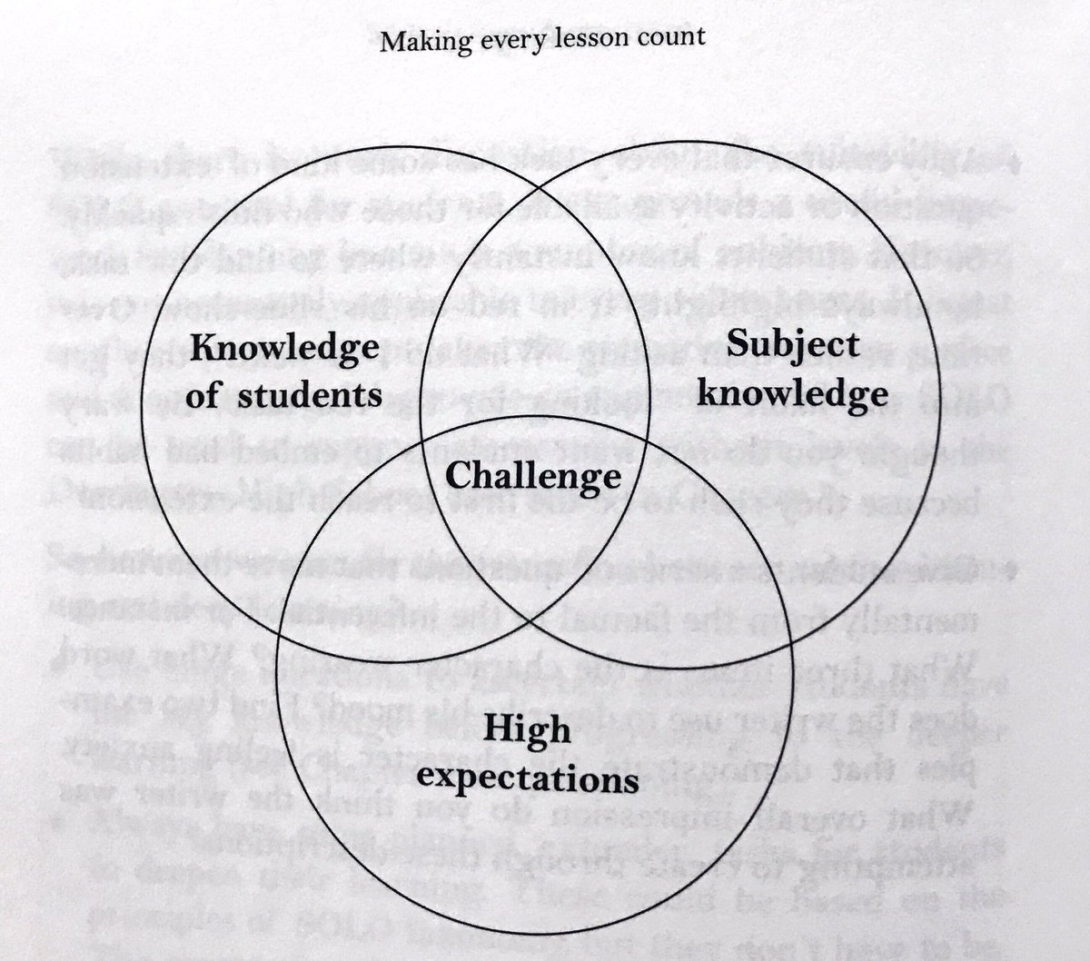 Making every RE lesson count. Six principles to support modern foreign language teaching. L. Hutton and D. Cox. Crown House Publishing Limited. (2021) ISBN- 978-178583518-6, pp.175. This book is another title in the series. The titles include among others: 1 Making every geography lesson count. Six principles to support great geography teaching. 2 Making every geography history lesson count. Six principles to support great history teaching. 3 Making every math lesson history count. Six principles to support great maths teaching 4 Making every MFL lesson count. Six principles to support modern foreign language teaching. (all of these titles have been reviewed in HLTmag). This book like all the other books in the series follow the success of Making Every Lesson Count so they present the same principle and are edited by the same team Shaun Allison and Andy Tharby, who have defined the six teaching and learning principles the books implement. They talk about the ‘sweet spot’ at the intersection of the three areas as represented by this Venn diagram: