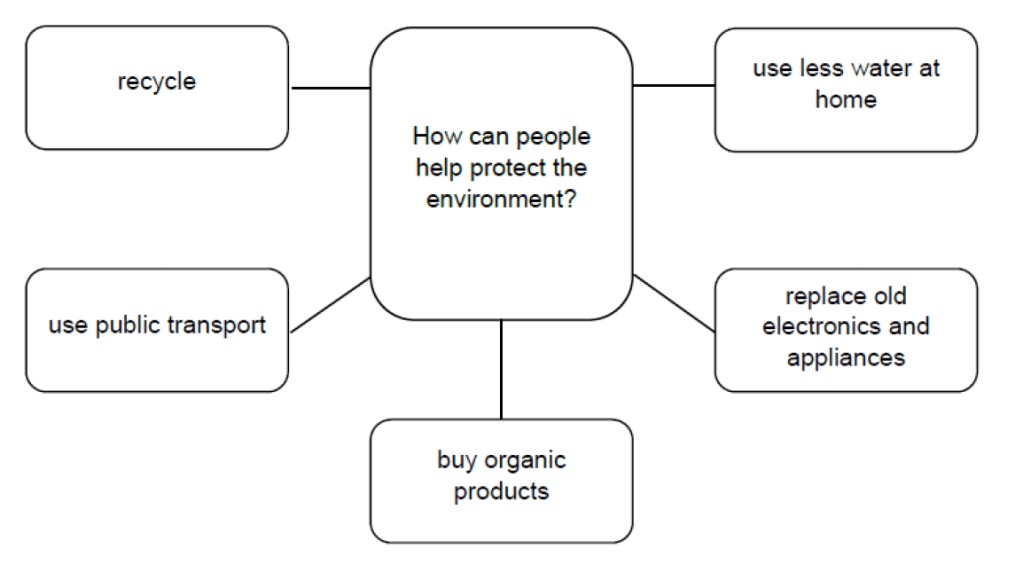 Although the format of the formal Cambridge Speaking examination is to have an interlocutor, and an assessor, who only assesses the paired students being examined, without peeking, it’s common in short-staffed training centers for a teacher to perform both roles, as a forced necessity. Part Two of the peeking test consists of a few themed questions about media, travel, environmental ecology, etc., before Part Three’s comparison of pictures and some questions about them (see fig. 4), which are supplemented by the student’s paired partner asking a question; e.g., when the pictures are about entertainment, ‘Do you like concerts?’ Parts Two, Three, and Four, last approximately four minutes each, with Part Four mainly consisting of a topic at the center of a diagram (see fig. 5); e.g., learning English language, and the paired students discuss the topic, based on suggestions for the discussion arrayed balloon-like around the central subject inside its own balloon. The test ends with the examiner asking questions related to the theme, other than the rather transparent issue of the penis’ desired functionality.