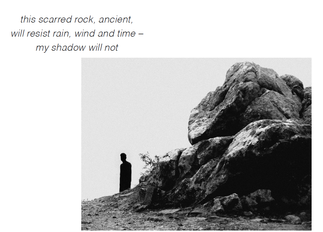 There are instances when the poem/photo pairing is mirror-like. In other cases, the pairings are of a freer interpretation; linked to a feeling, connotation or their suggestive nature. Above all, as often is the case in contexts of collaboration, our meanings existed in our inter-subjective worlds and were interpreted from personal perspectives. Collaboration also involves interpretation. Impressions and notions awaken in front of the viewer’s/reader’s eyes.