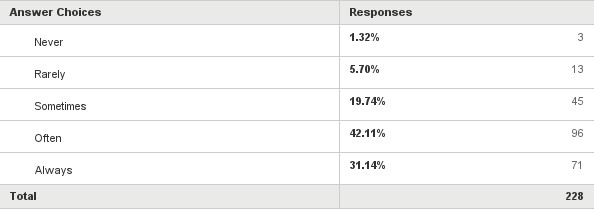 42,1% of the respondents answered “often” and this is a very positive datum, as it means technology is becoming crucial to teaching practices.