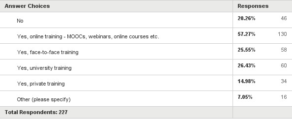 Fig. 2 – Previous training initiatives on using technologies for teaching and learning