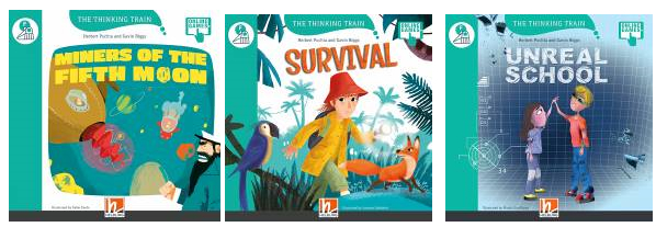 The Thinking Train. H. Puchta and G. Biggs (2020) Helbling Languages. Miners of The Fifth Moon. ISBN 9783990892404, pp 32, Survival ISBN 9783990892350 , pp32, Monkey Island. ISBN 978-3-99045-849-5, pp32, A Test for Jess. ISBN 978-3-99045-848-8, pp32, The Ice-racers of Triton. ISBN 9783990892367, pp32. Unreal School. ISBN 9783990892411 pp32. The new titles analysed in this review belong to The Thinking Train series of readers for young learners available at the five levels of the YLE Cambridge Exam; they get progressively longer and more complex grammatically and lexically. The aim of the books is to supplement an YL course by providing extra language practice, as well as by developing children’s thinking skills. Each book has the same structure; first pre-reading tasks which introduce or activate some of the language used in the story. Then the actual story told through text and pictures, and after the reading there are activities which involve elements of writing or drawing, and finally a ‘make and do’ section with ideas for projects like make a bedroom in a box, make a flag, make a flip book, or make a sand timer. As the children listen or read the story they have to interact by pointing to particular pictures, miming, answering personal questions relating to the story, commenting on the story, speaking to a classmate, acting out, thinking or drawing. The stories are interesting, and beautifully illustrated. I am sure the series will be very popular with teachers and learners. Additional resources for the readers are available online. The Teacher’s Guide gives further ideas how to develop thinking skills in a young learners’ class and gives the reasons for doing so. It also explores the learners’ and the teacher’s role in teaching thinking, and the role of errors. Finally it gives a photcopiable checklist for teachers, a teacher self-appraisal check-list, and a teacher’s guide.