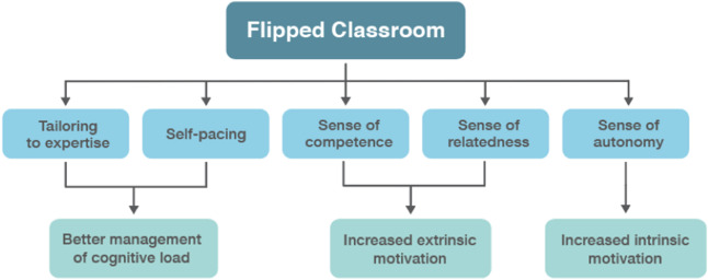In the review of personalized learning opportunities, with access to learning content outside the class, students can use features such as pause and rewind to privately revisit confounding information (Bergmann and Sams 2012; Doman and Webb, 2014; Hashemifardnia et al., 2018). Flexibility and the ability to adapt the learning pace with differences in individual attention were some of their reasons noted for the observed gains of the flipped classroom model (Muldrow, 2013). Additionally, when students make use of their own knowledge in the classroom, they take ownership of their own learning process and can be inspired to want to learn more about a topic because it becomes more personally interesting (Hao, 2016; Namaziandost and Nasri, 2019). Governing learning pace combined with positive personal learning experiences can result in increased success in the classroom (Wang, 2017). Abeysekera and Dawson, (2015) proposed a diagram presenting five different benefits of a flipped classroom model, including tailoring to expertise, self-pacing, sense of competence, sense of relatedness, sense of autonomy as shown in Figure 1.