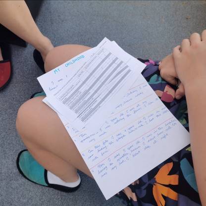 Picture 2: The texts are ready. The students create the timeline with the photos from the student’s childhood.