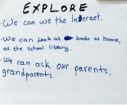 After the ‘Explore’ stem, students chose which question they wanted to work on and their preferred mode of work (individually, in pairs). The general guideline for those who would be searching on the internet was not to be lost in a plethora of information. It is often the case when students are assigned schoolwork of this kind that they come up with long, incomprehensible texts copied and printed from internet resources over which they have little control or understanding. I asked if they would rather come up with small texts (3-6 lines) focusing on the question they had chosen. They would also have to be able to present their responses in class, explain new vocabulary to their classmates, and be prepared to answer their questions.
