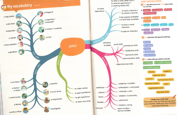 The course has a modern approach as it is project based, takes on board the 5 Cs - critical thinking, creativity, communication, collaboration, and cultural awareness. In the words of the publisher the edition I am looking at is also dyslexia-friendly which is reflected in the following way: “It focuses on modular units, a balanced grammar progression with revision, and a strong emphasis on vocabulary and communication, which are key features of inclusive educational materials that can benefit dyslexic learners.” I would add enhanced print, the font, choice of colours and layout. Personally, I love a number of features, especially the presentations of vocabulary in the form of mindmaps: