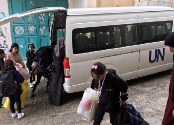 Due to lack of school buildings three entirely separate schools may occupy a school building through the day, each using the building for four hours, with entirely separate teachers, admin and head teachers. One school starts at 7am, the next at 11am and the third at 3pm. The picture shows one head teacher, with two of her staff, at the UNRWA school in Rafah.