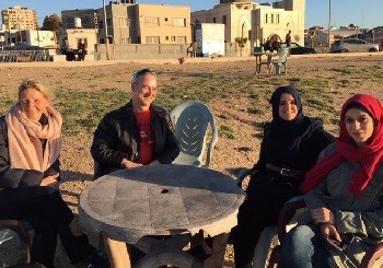 Final evening in Gaza: from left, Melissa, Nick, Rida, UNWRA director of education and head of the new teachers’ association, and teacher Ghufran.