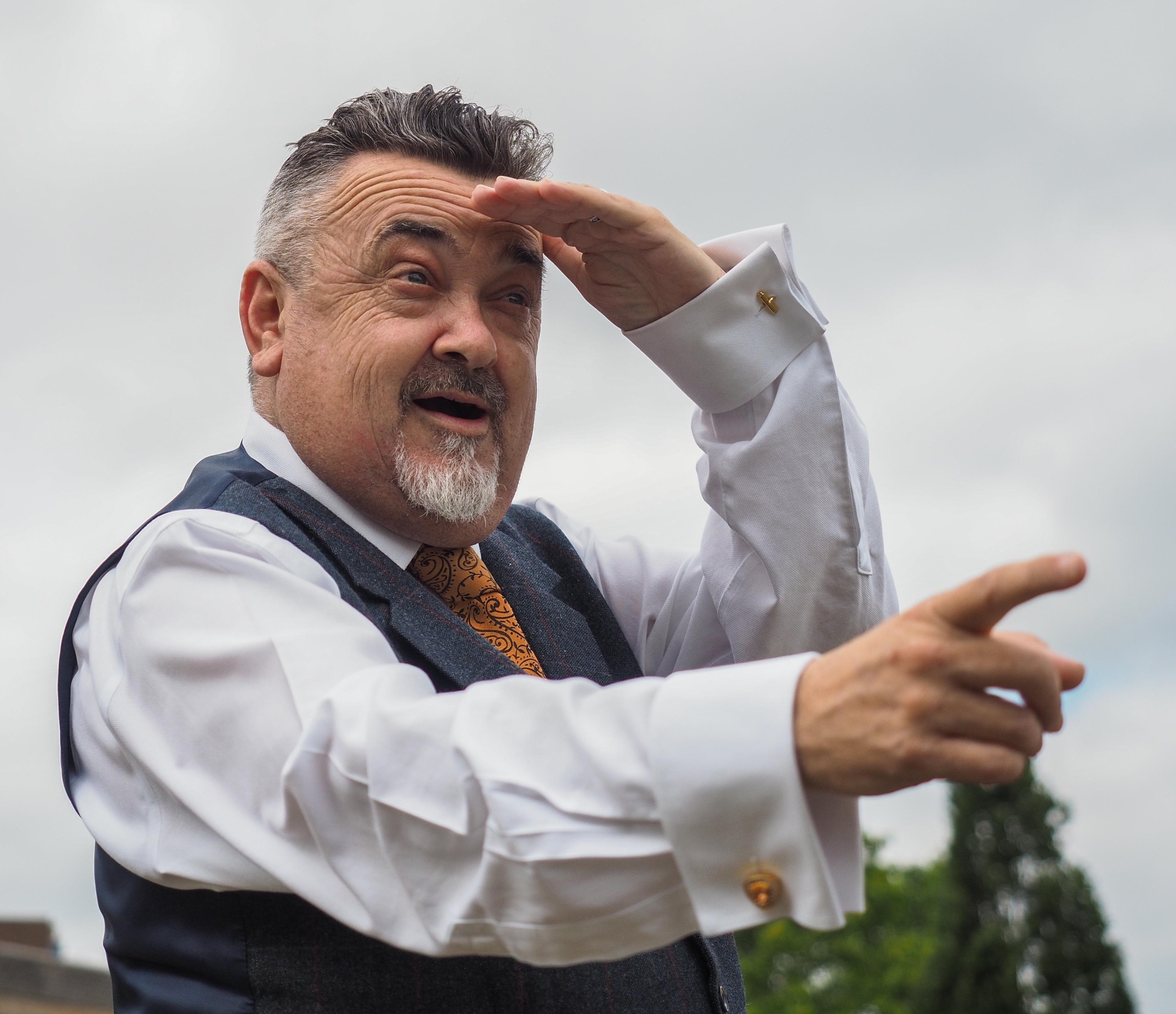 Jim, cape and cane in hand, always a picture of sartorial elegance.