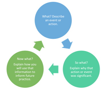 On our last CELTA course at NILE we introduced 2 new input sessions on reflection. The aims of the first one were to enable the trainees to know the importance of reflecting critically, to begin reflecting on their own experiences of teaching and learning and to expose them to Driscoll’s model of reflection, which was originally designed in the field of Medicine and show them how to apply it. We encouraged the trainees to use the template below to regularly reflect on their practice and to give themselves an action point with SMART (Specific, Measurable, Attainable, Realistic & Time-bound) targets to help improve their practice.