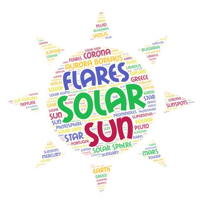 Use internet and find the word SUN in different languages. Create a “word cloud” with these words and present it to the others. Tell the others the reason why you have chosen such a shape for your word cloud and what languages have you used.