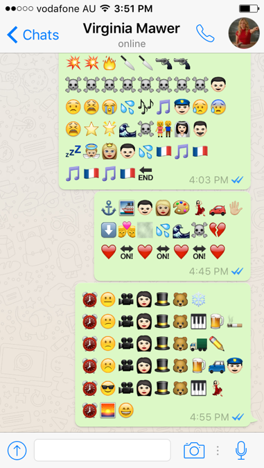 Teacher sends a famous story in emoji. Students have to work together to guess the title or work out if they know it, and then re-tell the story, or add to it as they see fit. Students can then create their own emoji versions of famous movies and send them to the groups.
