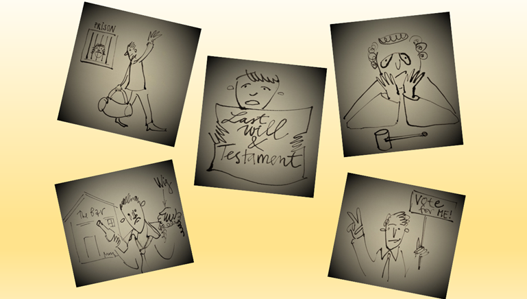 - Vocabulary revision and recycling (collocations of adjectives and nouns describing people, in our case legal terms, e.g., disbarred barrister, or other relevant terms, e.g., failed candidate).