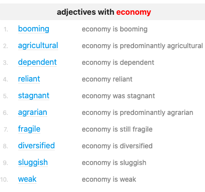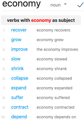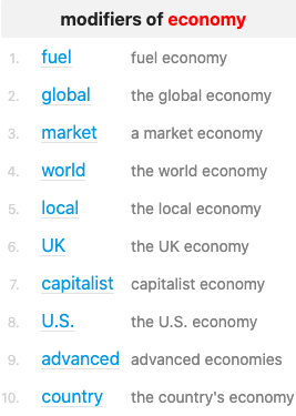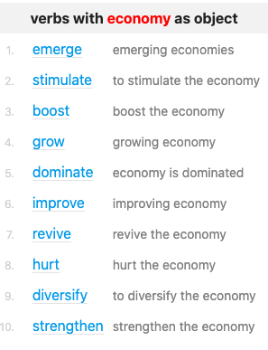 Figure 2: Example of Word sketch for the search term economy