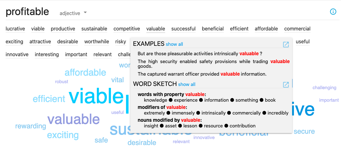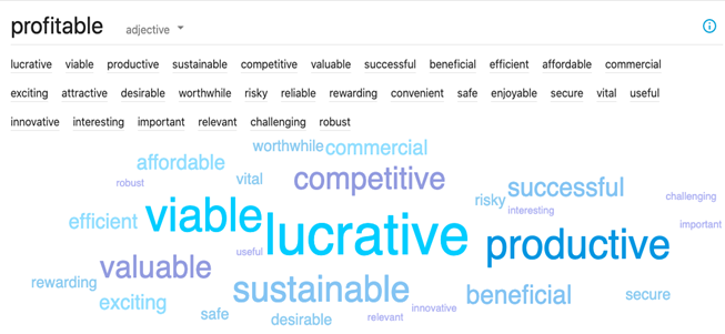 Figure 3: Example of Similar words for the search term profitable