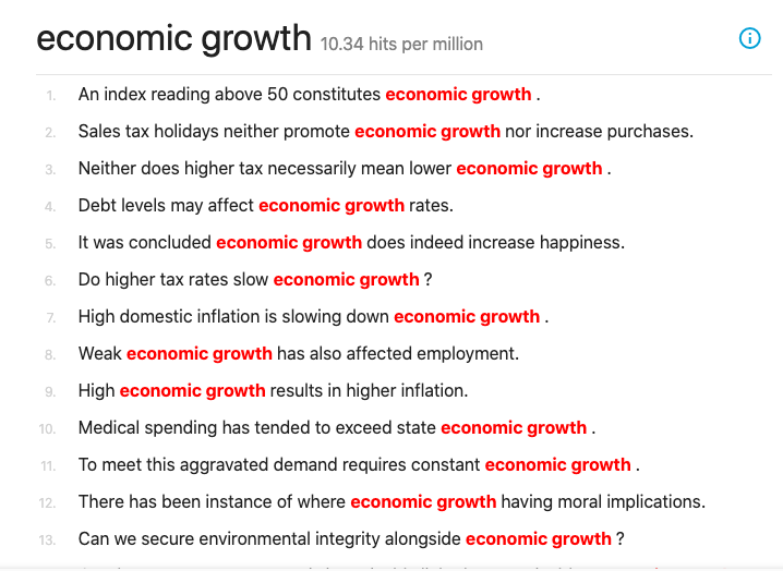 Figure 1: Example of concordance for the phrase economic growth
