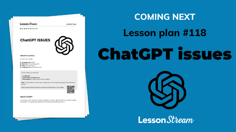 Join the LessonStream membership Also in the LessonStream Membership: • Resources: Lesson plan #118 (coming next week) will allow you and your students to explore issues around ChatGPT. Join the LessonStream membership