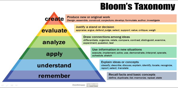 Note 5A: Blooms Taxonomy for an explanation of how it is used see https://tips.uark.edu/using-blooms-taxonomy/ a