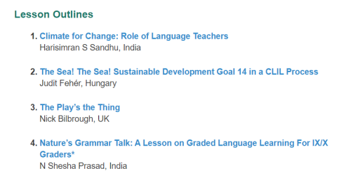The aim of the book (which is free to download) offers innovative ideas for language teaching while raising awareness of the United Nations Sustainable Development Goals. It mainly focuses on the environment, so goals 13-15. In the words of the British Council experts:
