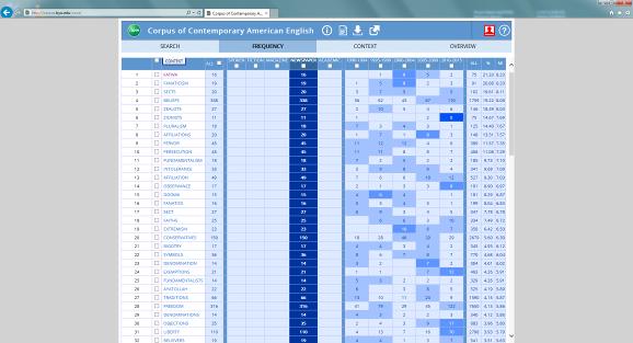 Frequency is an important concept in linguistics (Linquist, H., 2009). The number of examined words appearing in a corpus are their ‘raw frequency’, which presents no problems with corpora of equal size. However, most corpora are not of an equal size, so what’s compared are normalized frequencies per thousand or million words, which necessitated comparing the main corpora and sub-corpora of BNC and COCA.