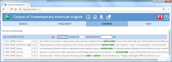 Although there is semantic overlap between the terms, ‘spiritual’ and ‘religious’, they aren’t synonyms. Corpus linguistics techniques on the British National Corpus (BNC), and the Corpus of Contemporary American English (COCA), are useful in investigating usage. Consequently, the examination of similarities and differences between the terms `religious` and `spiritual` ought to begin with an introduction of the corpora, BNC and COCA, before focusing on the use of the terms in the sub-corpora of newspapers.