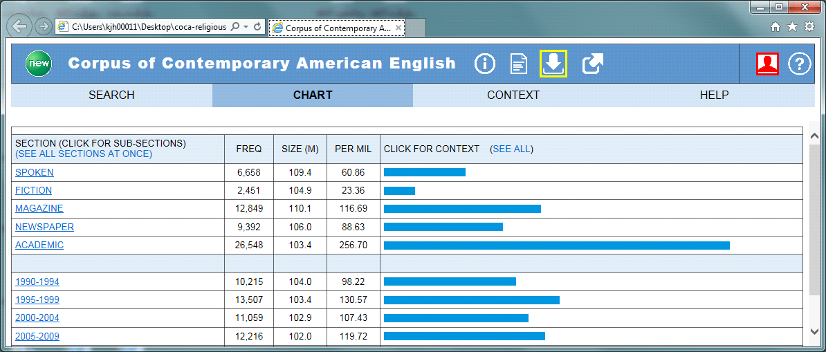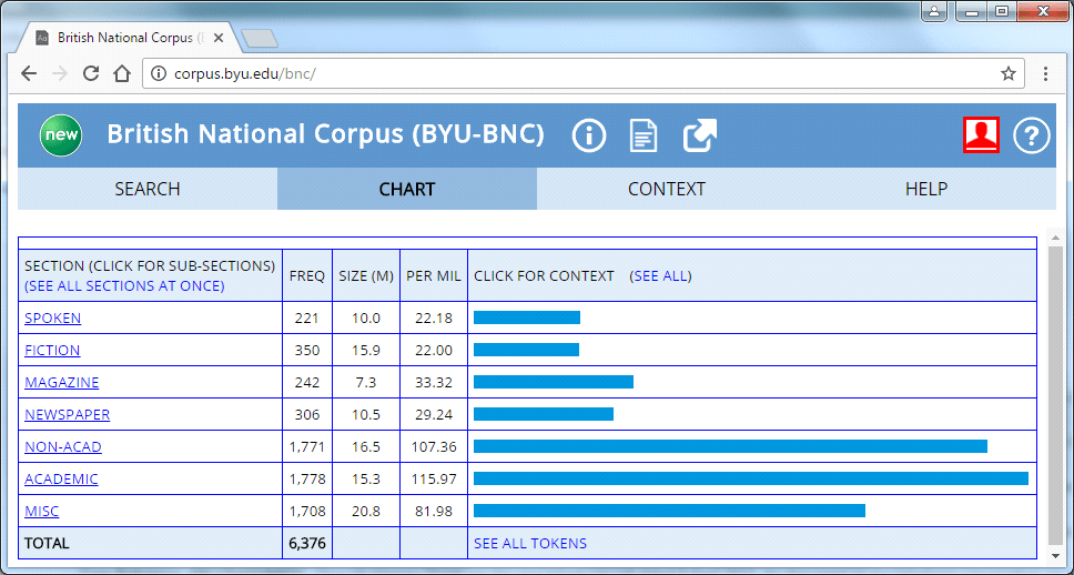 The spoken part (10%) consists of orthographic transcriptions of unscripted informal and formal spoken language. COCA is the largest freely-available corpus of English, and the only large and balanced corpus of American English. The corpus contains more than 520 million words of text, and is equally divided among spoken, fiction, popular magazines, newspapers, and academic texts. Including 20 million words each year from 1990 to 2015, the corpus is updated regularly, so COCA and BNC are representative. According to Leech, G. (1991), such a corpus’ findings are general to the language as a whole; or a specified part of it.