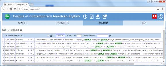 `Ayatollah` used with `spiritual` doesn`t appear to have strong negative prosody. Although it appears to be used in the context surrounding discourse to do with Iran, it`s politically informative and so collocates neutrally. The collocational relationship is strictly synonymous with `religious Ayatollah`, that is, in the case of `Ayatollah`, `religious` and spiritual` seem generally interchangeable for English speakers, which is alarming from the perspective of a public opinion possibly influenced by Islamic Sufism to be unable to differentiate between Islamic religious extremism and Islamic spirituality, which is potentially terroristical and manipulative through spiritual Sufism.
