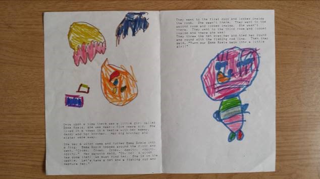 The examples I have chosen range from very young children who made a story but couldn’t write through to very competent teenagers.