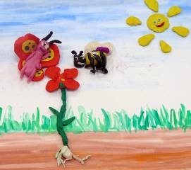 1. We create the characters from the cartoon “The little seed” from modeling clay together with children to make a clay animation later, and draw the background. ( 50 min)