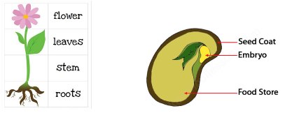 1. First, we look at parts of a flower and a seed and its structure as well and find out where most plants come from. With the help of the cards we match the parts of the flower and the words.  Then we draw our own seed structure, color and label it. ( 50 min)