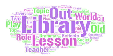 I have used some methodologies to write the teacher’s guides: Communicative, CLIL, Problem-solving, TBL and, in a certain way, Dogme. This is an example of how I develop a lesson, as a word cloud. In this case, the lesson is about Libraries and the target language is the Embedded Questions.