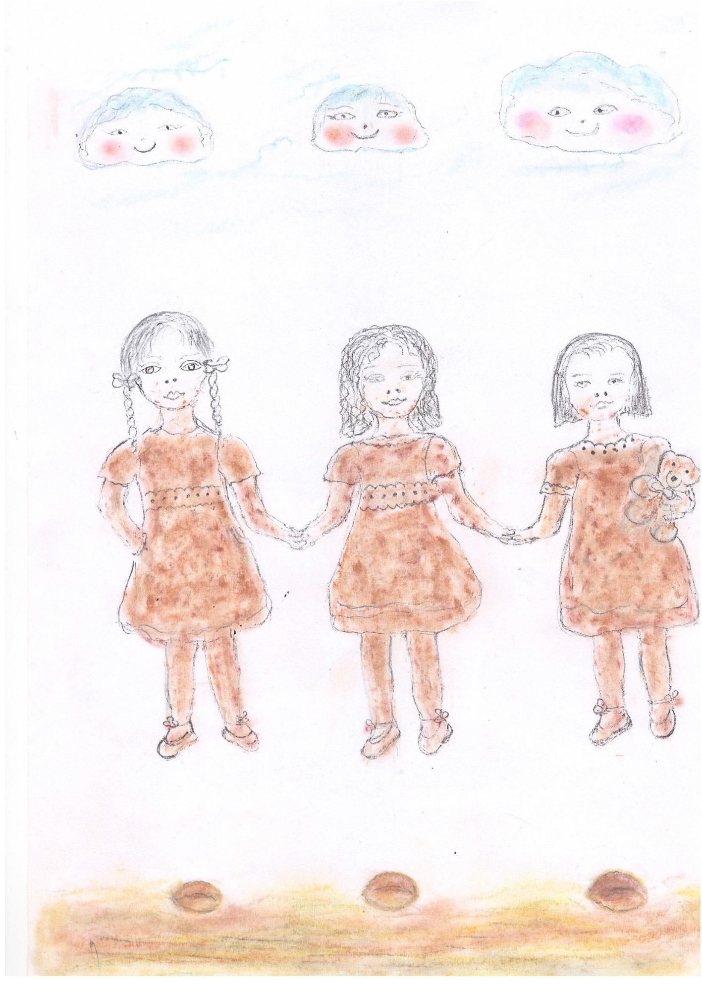 Maybe the walnut tree made this wonder in order to give them joy again and to make them think, because those who eat walnuts become smarter. Or it could have been a bird hiding among the branches of the tree. I don‘t know. I only know that in the first day at kindergarten Annie, Betty and Vicky received presents from the sky.
