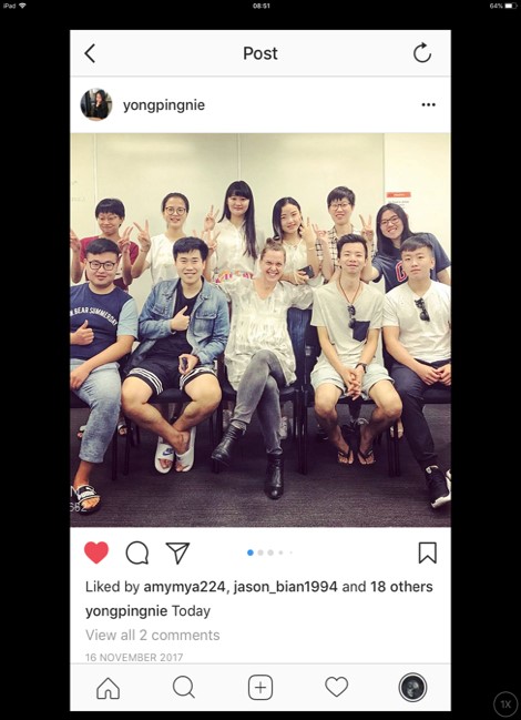 At the beginning of each term I take a class photo this forms the basis of the student images I use for the excel vignettes. Here is an example from one of my student’s Instagram posts.